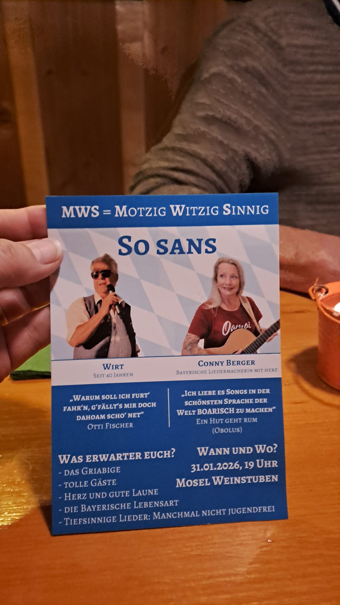 Nicht nur am Nockherberg - auch in den MWS: Derblecka, amüsant, hintergründig aber nicht beleidigend. Aufbereitet und zubereitet von Stefan und Rainer. Prima Unterhaltung im vollen Haus.